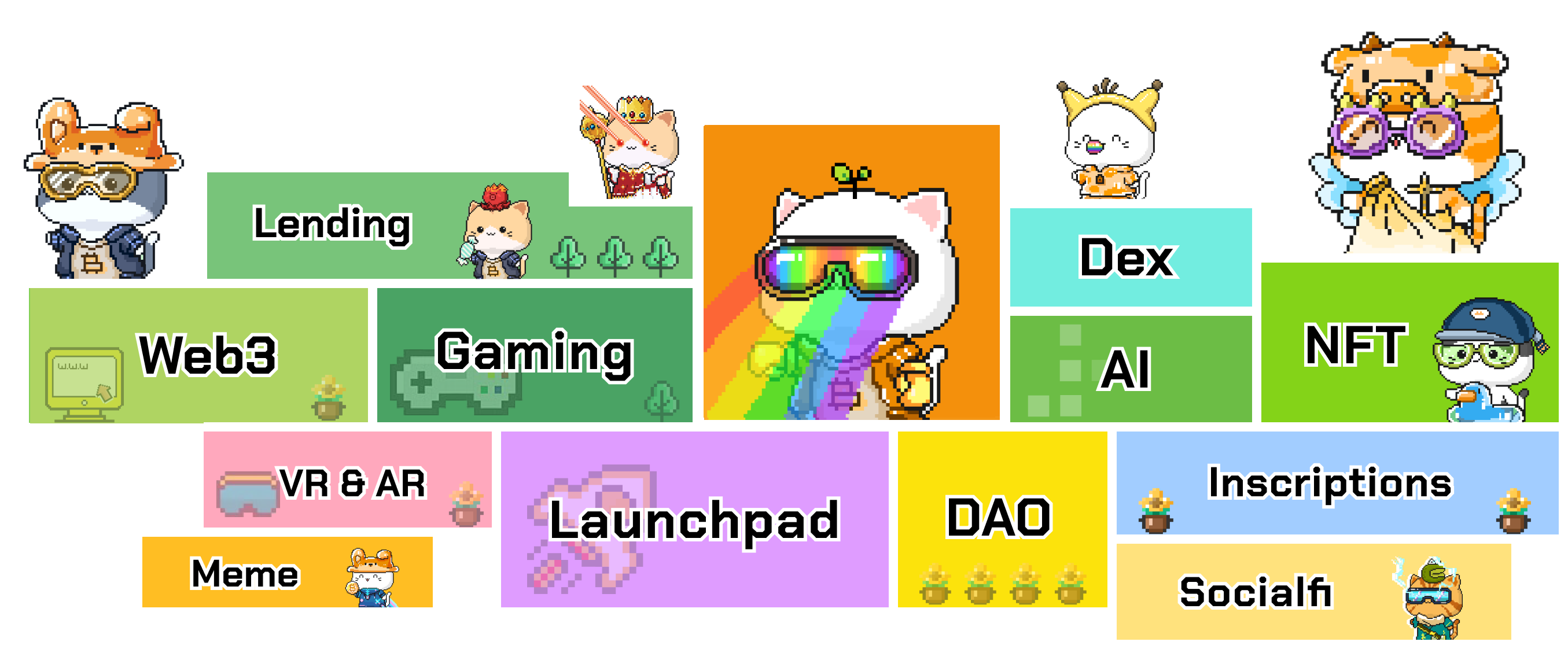 $1Cat was originally designed as a meme token with an adorable cat as its logo. It gradually evolves into the utility token of Bitcoin Cats Ecosystem, especially serving as the gas token of the 1Cat Chain.